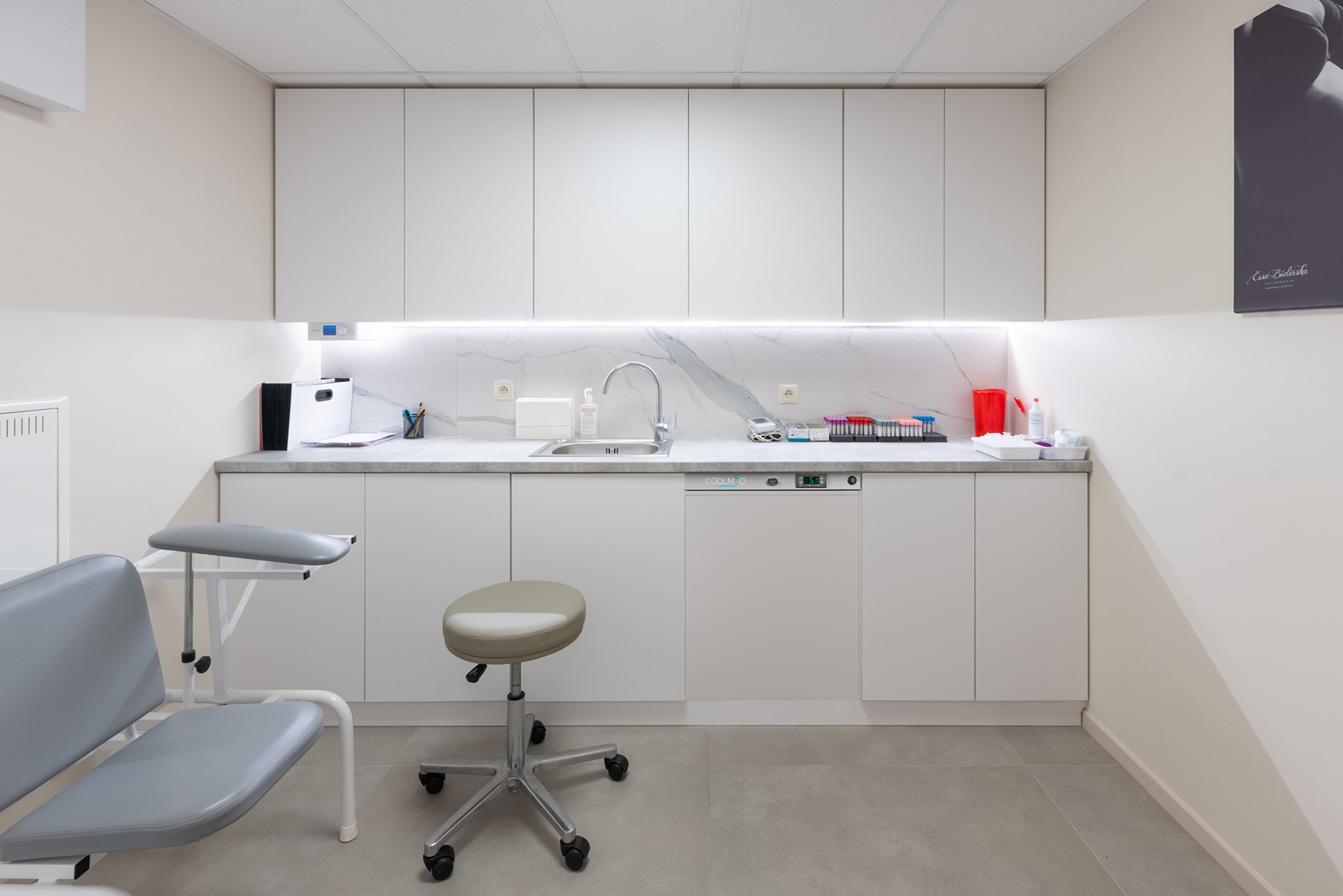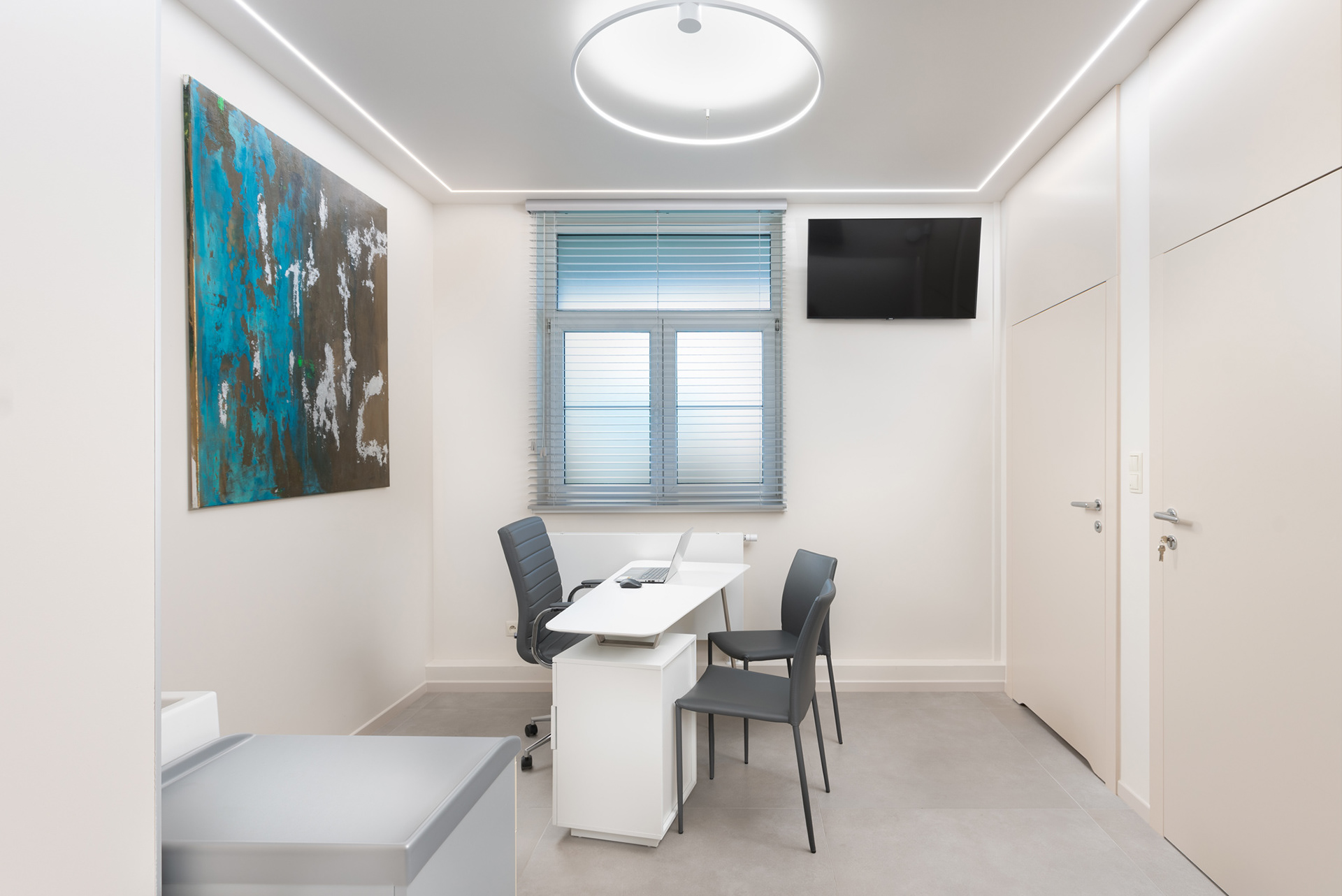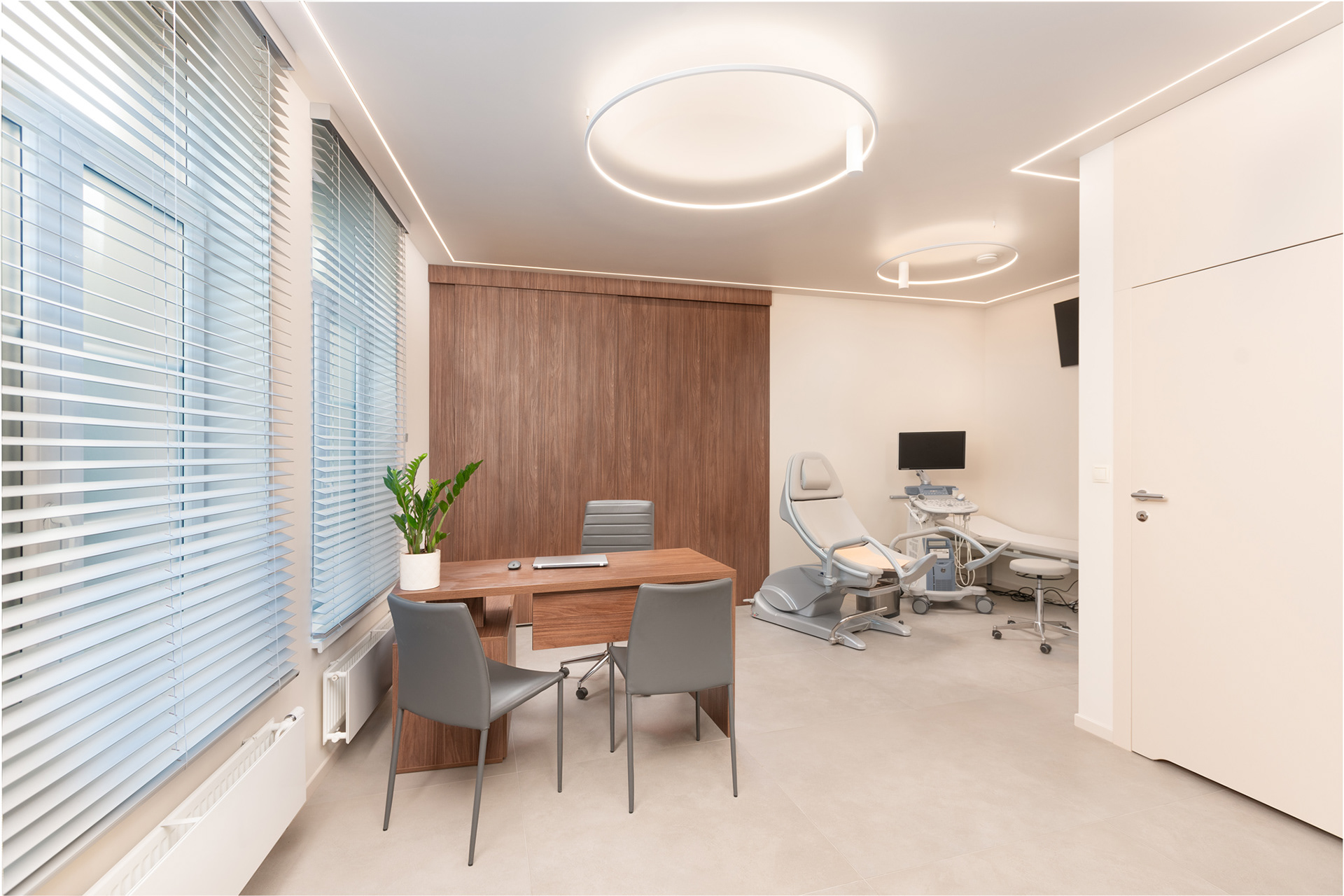Sesja zdjęciowa wnętrz gabinetów Mylna40 w Poznaniu. Nowoczesna przestrzeń w delikatnej kolorystyce dawała świetne efekty na fotografii wnętrz.