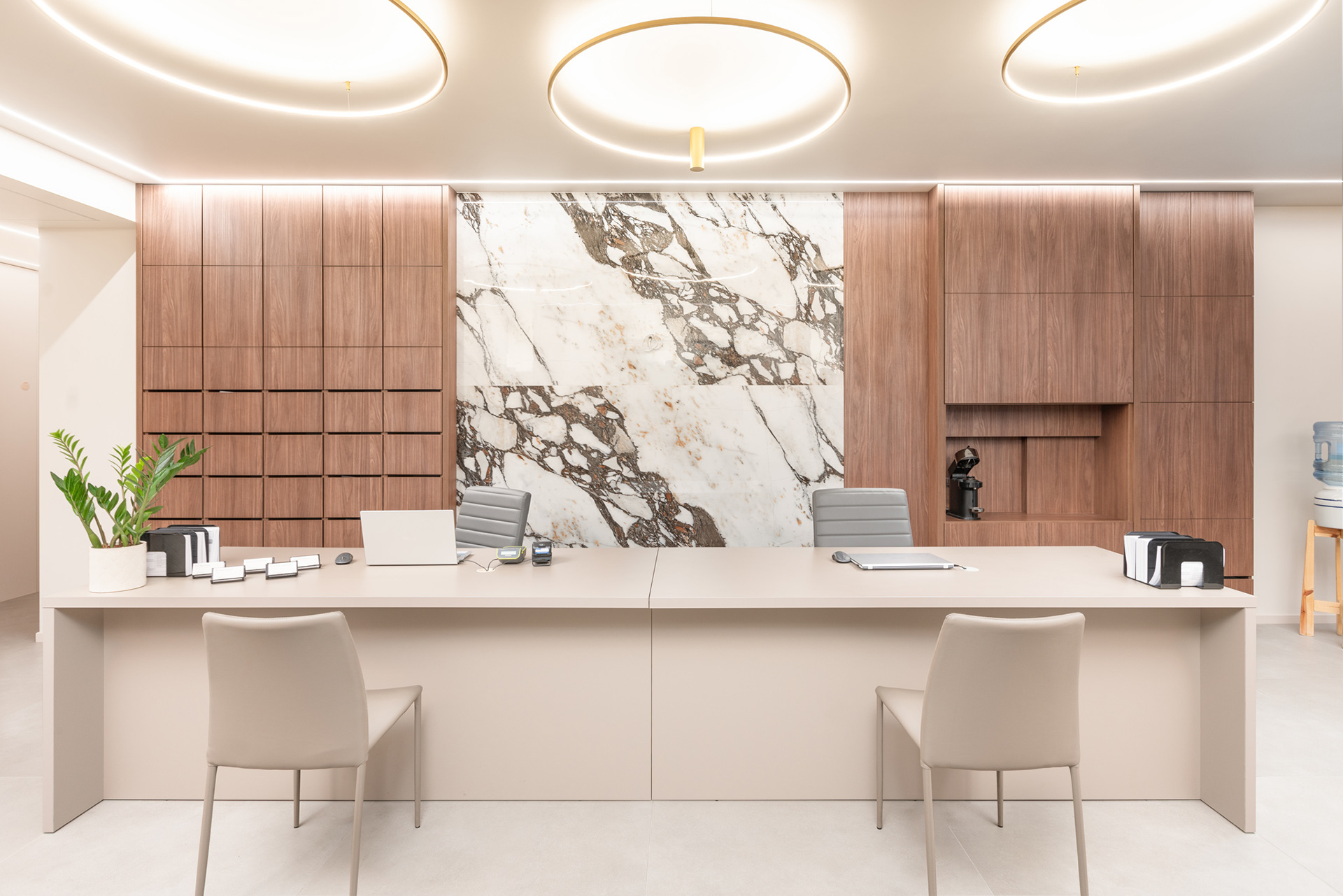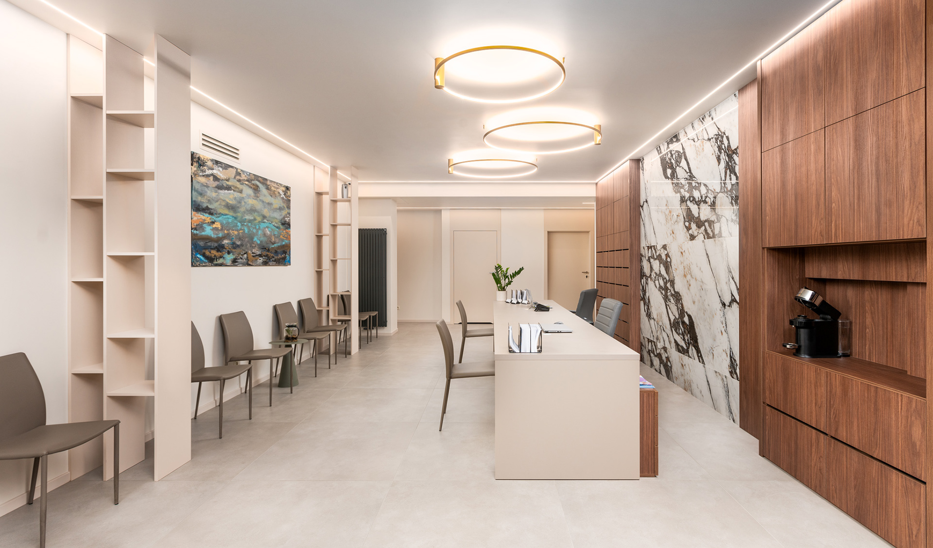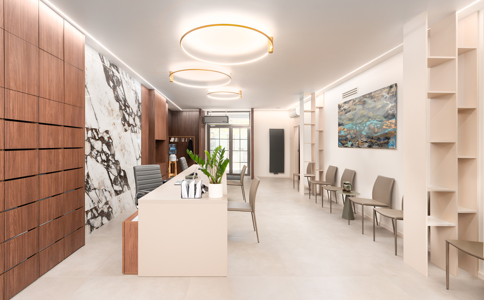Sesja zdjęciowa wnętrz gabinetów Mylna40 w Poznaniu. Nowoczesna przestrzeń w delikatnej kolorystyce dawała świetne efekty na fotografii wnętrz.
